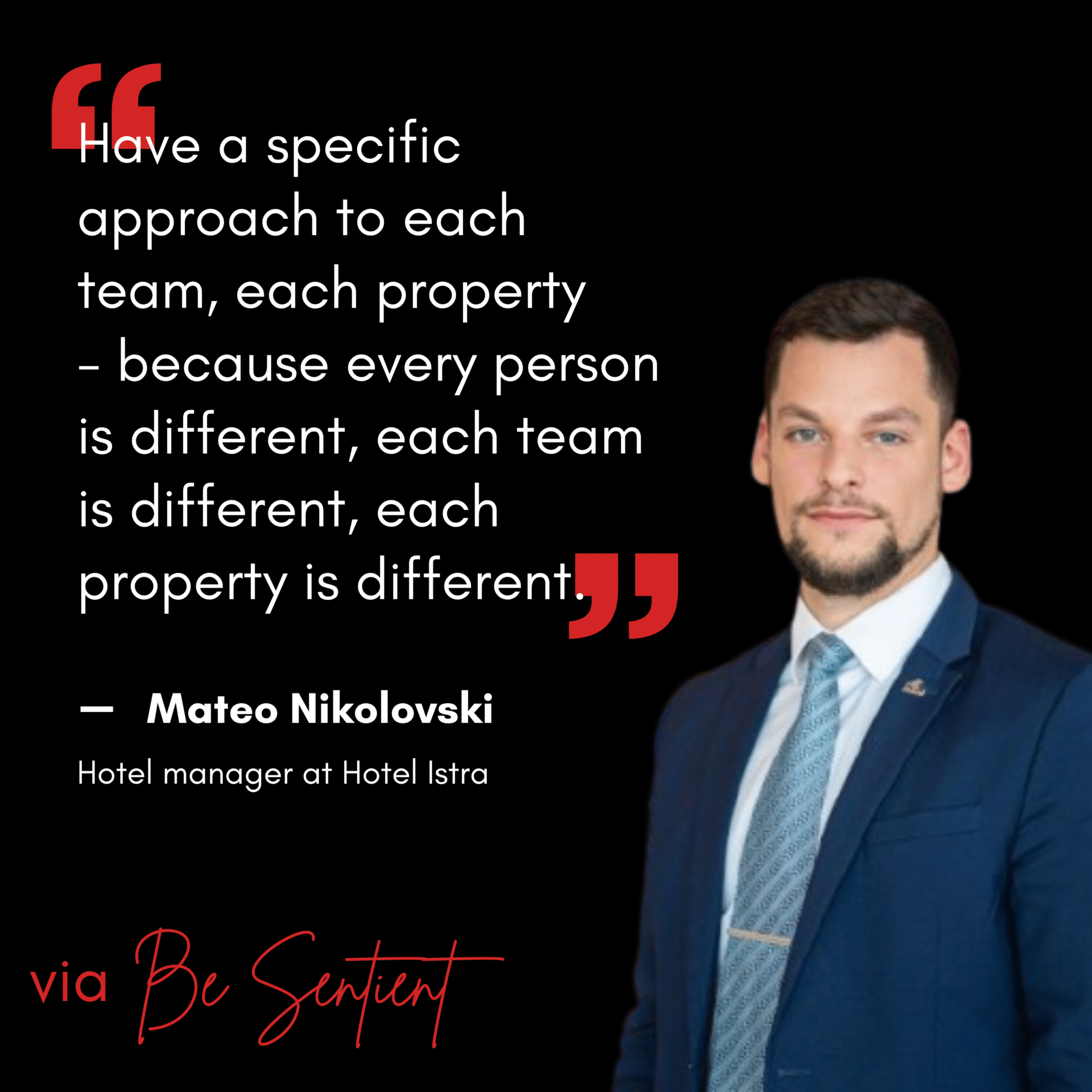 Mateo Nikolovski is the Hotel Manager at Hotel Istra (Liburnia Hotels & Villas) in Croatia. With a background in Swiss hospitality education and an MBA from the University of Ljubljana, he focuses on empowering teams, elevating guest experience, and fostering a strong workplace culture.